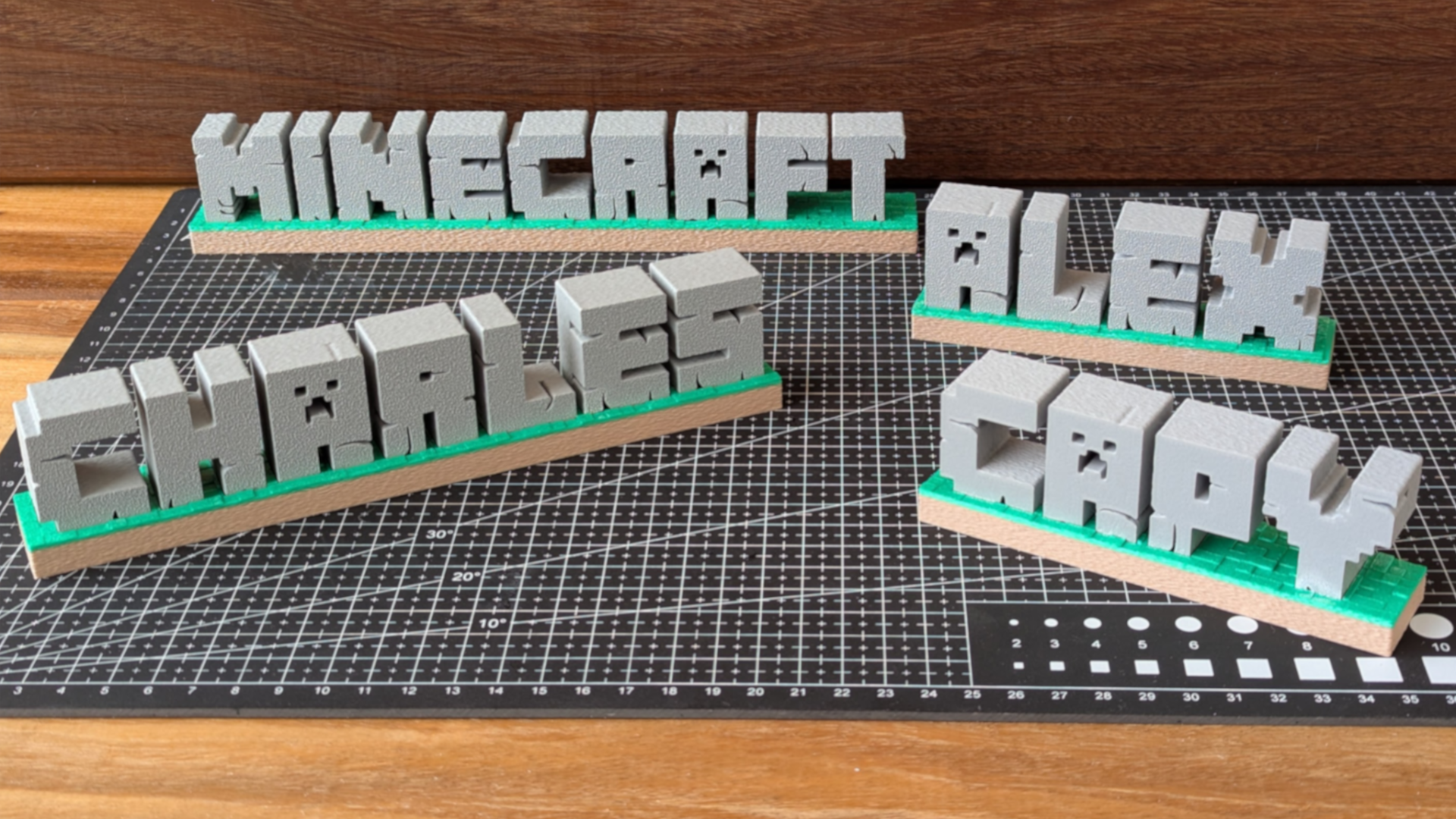 El nombre puede personalizarse completamente: elige el color de cada letra, con “bloques”, “césped” y “piedra” y crea una pieza única para decorar habitaciones infantiles, escritorios o zonas gamer.